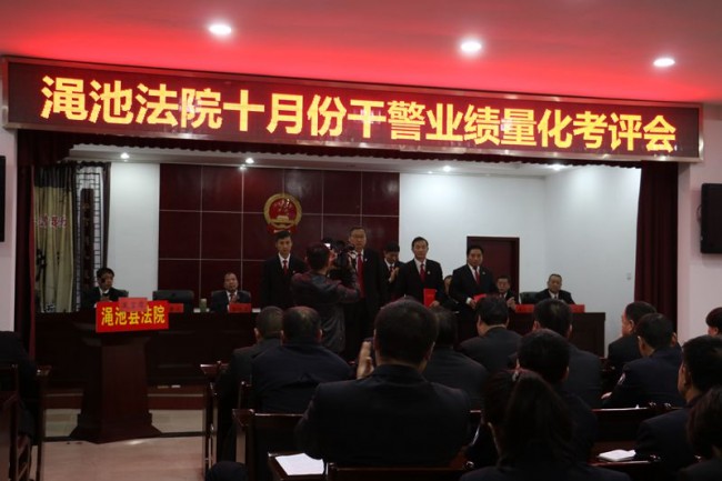 11月8日下午,渑池县法院召开2016年10月份干警业绩量化考评会。全体干警参加了会议。会议由党组成员、常务副院长陈明岚主持。党组书记、院长党立新做总结点评。