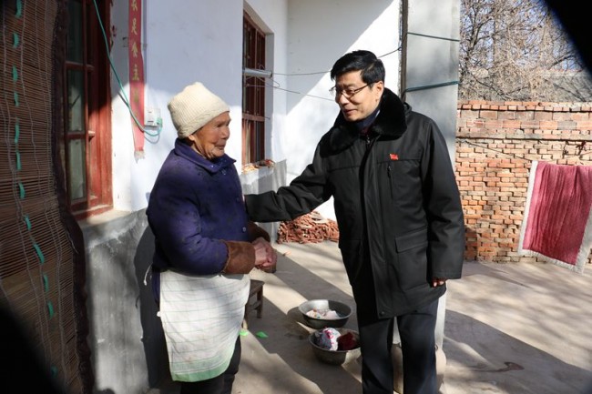 在东马村村干部的陪同下,党立新院长直奔困难群众家中,为他们送去了大米和食用油。在老教师赵水法家中,党立新院长亲切地给他聊起了家常,“家里有几口人?孩子有没有回家过年?过节还有什么困难没有?……”在80多岁的冯改珍家中,党立新院长由衷地祝愿她“保重身体,好好生活”,并鼓励她要坚定生活的信念,有困难尽管向组织反映。每到一处,党院长都详细了解每位慰问对象的家庭状况、生产收入和生活情况,鼓励他们要有战胜困难的信心和勇气,并叮嘱村干部要时刻关心、帮助、支持困难群众的生活生产,力所能及的为他们解决实际难题。