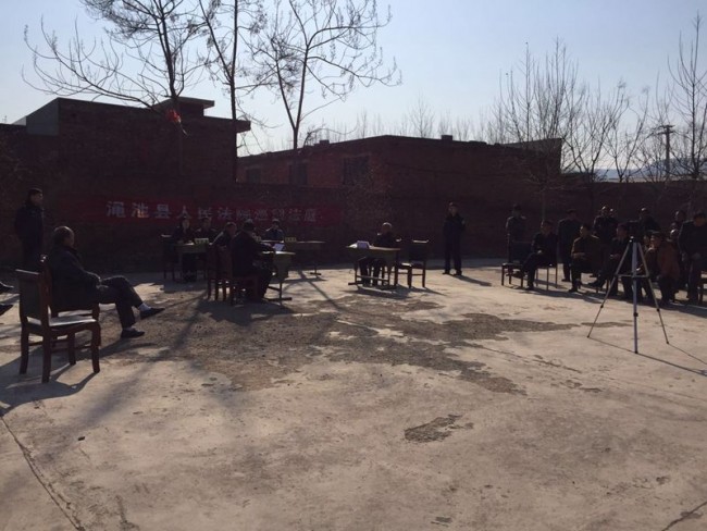 上午9时许,张村中心法庭的法官和干警们已来到距法院30余公里的渑池县仁村乡东张村村委会大院内,与正在召开村委会的干部们寒暄几句后,大家便开始忙碌起来。