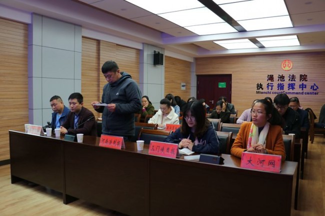 会上,执行局长毛智伟通报了渑池法院开展惩戒失信被执行人的相关情况,主要介绍了该院在惩戒失信被执行人中采取的主要做法:一是全方位宣传曝光,将惩戒失信被执行人的各种规定向全社会进行宣传报道,做到宣传无盲区,惩戒无死角。二是全方位联合信用惩戒。三是及时采取强制措施对失信被执行人进行惩戒。介绍了该院开展惩戒失信被执行人活动中取得的成效。执行局长毛智伟说:渑池法院和全国各地法院一样乘势而上,从对失信被执行人全方位惩戒为切入点,执结了一大批案件,受到了社会各界的好评。今年元月份至今共完全执结案件131件,执结标的1200万元,部分执结案件120件,执行到位标的800万元,共计执行到位标的2000万元,累计发放执行款1500万元。最后,执行局长毛智伟就惩戒失信被执行人的相关问题和具体案例回答了记者的提问。