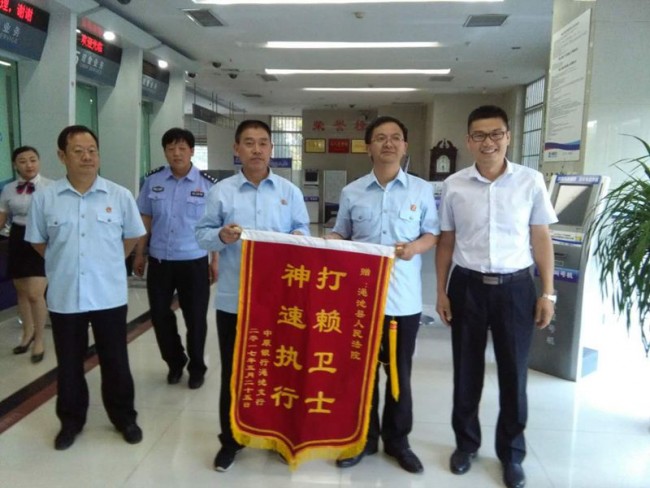 到中原银行渑池县支行后,刘占军院长首先将中原银行渑池县支行的63万元执行款支票交给支行负责人,而中原银行渑池县支行负责人也将一面写着“打赖卫士,神速执行”的锦旗赠送给刘占军院长。并对刘院长一行人主动深入金融机构走访调研表示热烈欢迎,对一直以来法院在依法维护金融资产安全方面做出的努力给予高度评价和衷心感谢。同时,就近几年的诉讼清收案件基本情况进行了介绍。