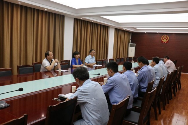6月15日上午,三门峡市中院法警支队长王亚萍一行3人在渑池法院党组书记、院长刘占军的陪同下,就该院司法警务安全工作进行实地调研指导。