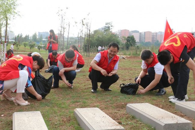 活动中,刘占军院长与党员志愿者们一起佩戴党徽,身穿志愿者队服,自带垃圾袋,对游园内的杂草、垃圾进行了认真拔除和捡拾。大家发扬不怕苦、不怕累的优良传统,经过一个多小时的努力,将该院义务劳动划分区域拔除、捡拾得干干净净,得到了周围群众的赞许。