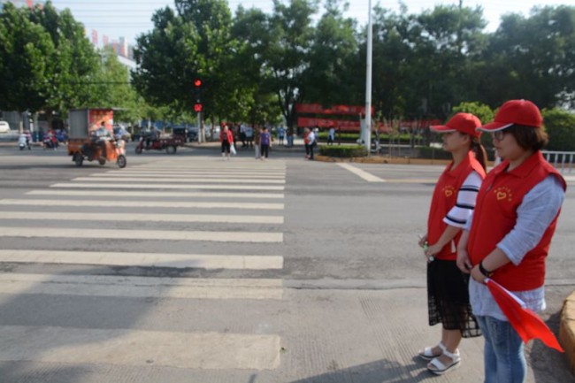 志愿者们头戴小红帽,手执小红旗,身穿红马甲在人流密集路口,通过手势、言语劝导等方式,协助交警维护交通秩序,倡导文明出行。同时,对行人不走人行道、横穿马路、不走斑马线、不按指示灯行走、闯红灯和非机动车不走机动车道、逆向行驶、闯红灯、乱停放以及机动车乱停放等交通违法行为进行劝阻和引导,成为繁忙的早晨大家上班路上一道亮丽的风景线。