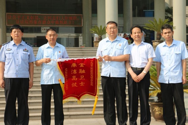 6月27日上午,澳洲联邦银行(渑池)村镇银行有限责任公司一行2人,专程向渑池法院送来“金融卫士 廉洁高效”锦旗一面,以表达对该院执行干警为银行收回部分不良贷款的由衷感谢!