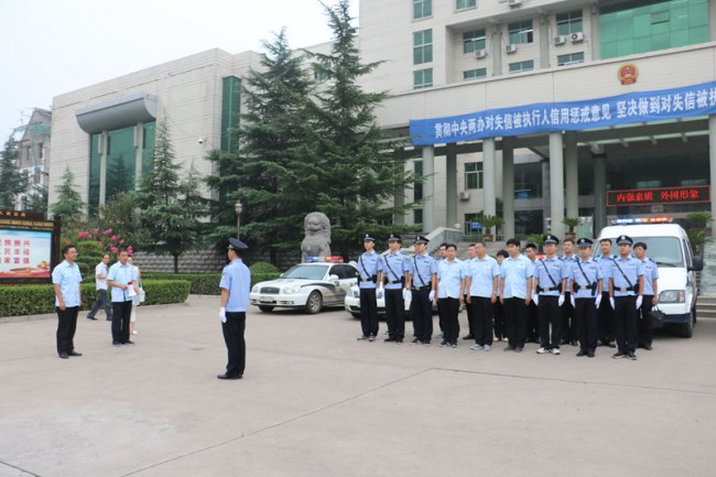 上午8点30分,参加集中执行活动的干警统一着装,在办公楼前列队集合,在刘占军院长发表了简短有力的动员讲话后,所有参战干警统一乘车开赴各执行现场。