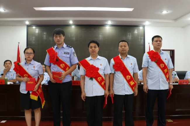 会上,党组成员、执行局局长毛智伟通报了2017年7月份各业务庭及干警个人审判质效考评情况;党组成员、政治处主任茹育俊宣读了《关于表彰奖励2017年7月份办案标兵的决定》;刘占军院长为办案标兵颁发了荣誉证书;两名结案数最多的法官上台发言。最后,党组书记、院长刘占军作了重要讲话。
