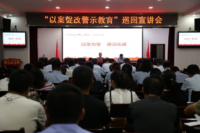 为进一步推动以案促改警示教育活动深入扎实开展,9月22日下午,渑池县法院召开“以案促改警示教育”巡回宣讲会。县委党校公务员培训室主任、高级讲师郭军华为全体党员干警上了一堂生动而深刻的宣讲课。宣讲会由党组成员、纪检组长刘波主持。