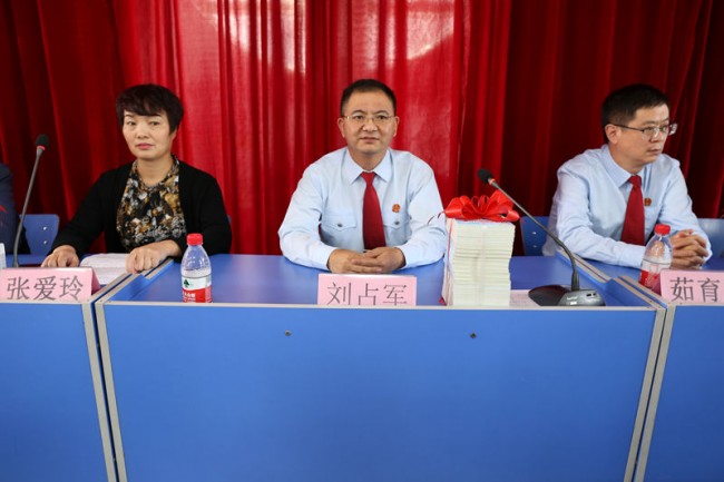 党组书记、院长刘占军向学校赠送了《成长路上,我们与法同行》和《让法律照亮留守回家的路》普法口袋书,并勉励大家要学法用法、自觉守法,坚定理想信念,做到自重、自警、自勉、自励,踏踏实实学习,提高自身修养,做一名新时代的有志青年。