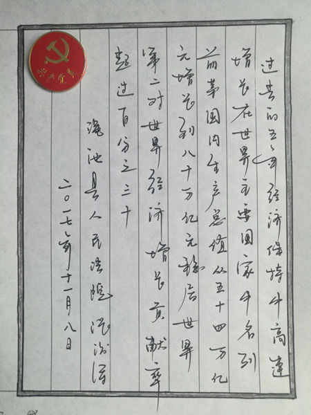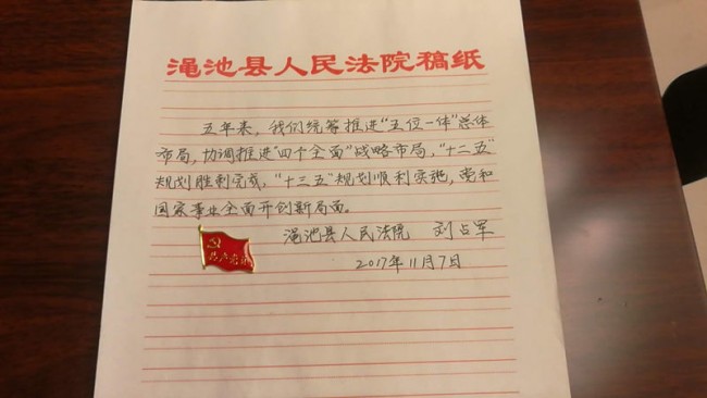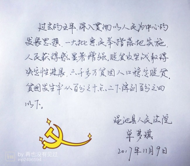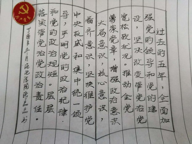 院领导带头,全体党员干警踊跃参与。每日以院政治处在微信工作群里推送的十九大报告内容为依据,可以用钢笔、铅笔、毛笔、彩笔等书写形式。一篇篇精彩的手抄十九大报告内容在办公室、审判庭、党员活动室、扶贫一线和温馨的家里等场所呈现出来,随后拍照修裁发到微信工作群里与大家一起学习共享。政治处安排专人每天将该院党员干警手抄的十九大报告内容,统一推送到V观渑池公众号平台与全县干部群众互动学习分享。截至活动开展以来,该院每天都有部分党员干警手抄的十九大报告被V观渑池公众号平台所采用。