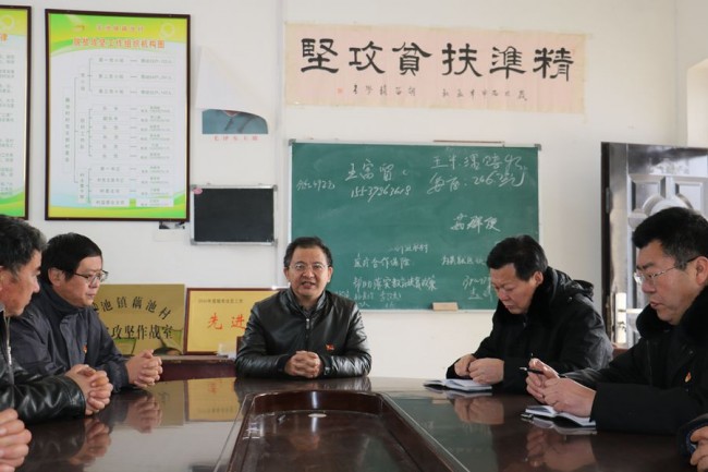在藕池村委会办公室,刘占军院长与藕池村两委会成员、驻村扶贫干部进行亲切交谈,认真听取了工作队长杨保敏和第一书记张群芳2017年脱贫攻坚工作的情况汇报,详细了解了藕池村脱贫攻坚任务落实情况、村民主要经济收入、产业发展情况和驻村干部工作开展情况。听取汇报之后,刘院长对驻村干部克服困难,扎根基层,积极投身脱贫攻坚一线的这种“舍小家、为大家”的精神给予了高度评价。