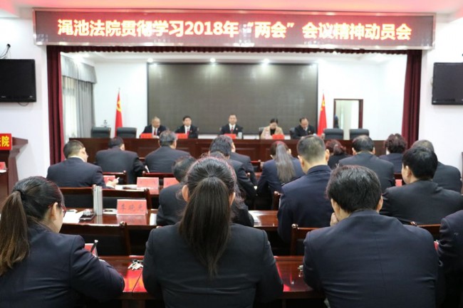 2018年3月22日,全国法院学习贯彻2018年全国“两会”精神电视电话会召开后,渑池县人民法院党组高度重视,迅速行动,就地组织干警传达学习贯彻2018年全国“两会”精神。党组书记、院长刘占军出席会议并就贯彻全国“两会”精神及今后各项工作提出了明确要求。