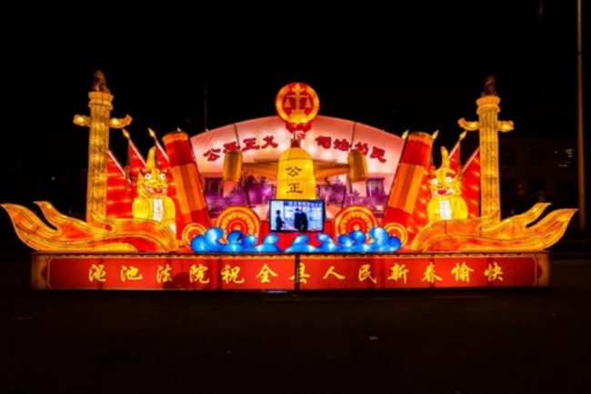 接到通知后,渑池县法院党组高度重视,在元宵节灯展活动办的具体指导下,精心设计制作了一盏长10m,高4.5m的参展彩灯《公正之光》。彩灯背景卷轴是渑池县人民法院,代表了彩灯所属单位,正前方的警钟法锤更是宣扬了法院的公正,旁边的两只獬豸是勇猛、公正的象征,更是司法“正大光明”“清平公正”“光明天下”的代表。同时,在参展期间,该院又安排干警轮流值班护灯,保障了彩灯的正常有序运转,受到广大群众的一致好评。经评委组评选,渑池县法院彩灯《公正之光》被县委县政府授予2018年“元宵节灯展二等奖”。