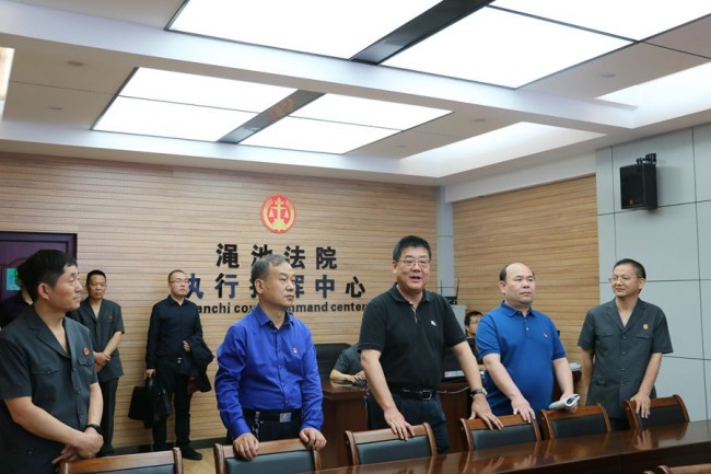梁维院长来到渑池县法院,查看了该院办案模范荣誉榜、滚动电子屏和执行指挥中心。在渑池县法院执行指挥中心,梁维院长详细了解了各项执行指标的完成情况,要求要瞄准执行工作第三方评估要求,逐项对标,分析数据,发现问题,紧紧依靠党委领导,主动争取方方面面的支持,形成攻克执行难的合力,下大力气提升执行质效,以执行工作的实际成效助力全县社会治理和诚信社会建设。