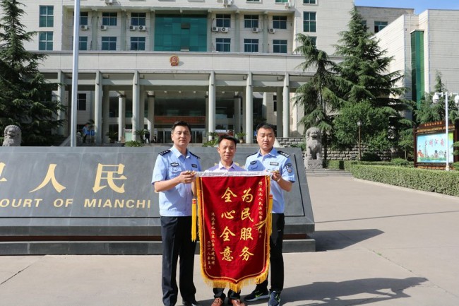 6月4日,周一早上刚上班,申请执行人王某某手持“为民服务 全心全意”的锦旗,站在渑池法院门口,逢人便说“我不知道该怎样表达我内心的敬意,我只能说渑池法院真好,渑池法院执行局真好”。