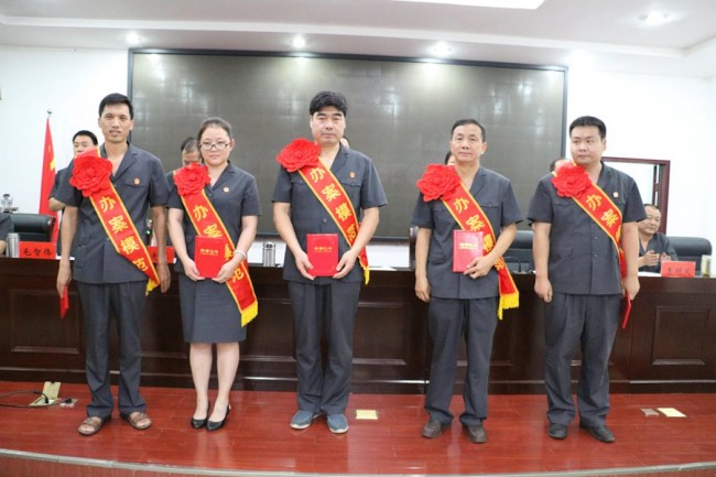 会上,党组成员、副院长张军通报了2018年7月份各审判团队及干警个人审判质效考评情况;党组成员、执行局长毛智伟宣读了《关于表彰2018年7月份办案模范的决定》;院领导为办案模范颁发了荣誉证书;三名结案数较多的干警上台作经验交流;最后,党组书记、院长刘占军作总结点评。