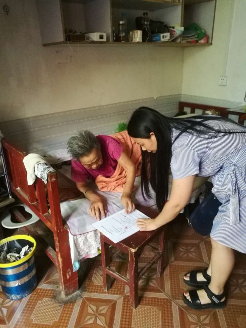 老人目前卧床不能行动,又不识字,儿子常年在外,目前居住在女儿家,女儿照顾自己又离不开,如何诉讼成难题。渑池县法院立案团队了解情况后,随即决定上门为老人办理立案手续。