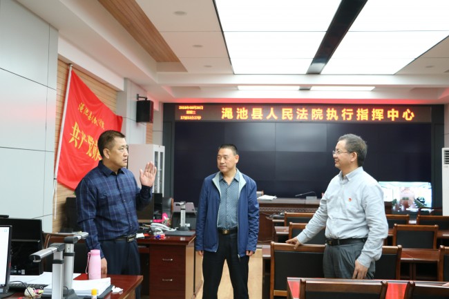 刘胜利副院长一行在渑池法院刘占军院长的陪同下,先后看望了刑事审判团队干警和执行团队干警,与干警们亲切交谈;实地察看了渑池法院干警活动中心,并结合梁维院长讲的“会生活、能工作”,对渑池法院文化建设工作提出了指导性建议和更高的要求。