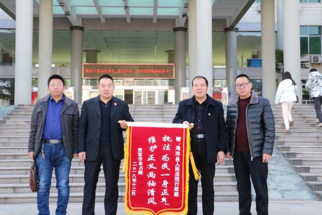 寒冬时节,寒意浓浓。2018年12月17日上午,灵宝市焦村镇南上村的余某某来到渑池县人民法院,将一面写有“执法为民一身正气 维护正义两袖清风”的锦旗送到行政团队办案法官手中,以表达自己最真挚的谢意。