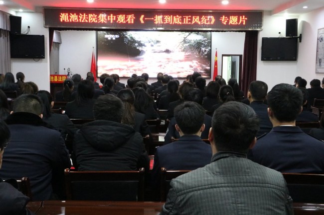 2019年1月18日,渑池县人民法院组织全体党员干警集中观看《一抓到底正风纪》专题片。
