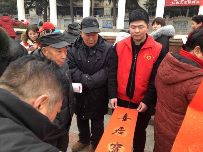 一幅幅满载祝福的春联,一张张热情洋溢的笑脸。通过此次志愿活动,为人民群众送去了党和政府的深切关怀,同时,也传播了“奉献、友爱、互助、进步”的志愿精神。