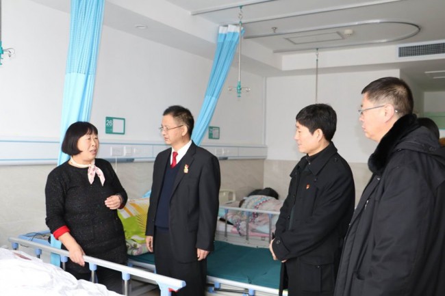 在慰问困难党员中,每到一处,刘占军院长都与他们促膝长谈,仔细了解他们的生活、家庭、身体健康情况以及存在的困难,并把慰问金一一送到他们手中。期间,在人民医院看望慰问因患病住院康复的困难党员杨永青时,刘占军院长与其家属亲切交谈,详细了解他的病情、治疗情况及家庭情况,并鼓励他要树立信心,克服困难,专心治疗,战胜病魔,争取早日康复,重返工作岗位。