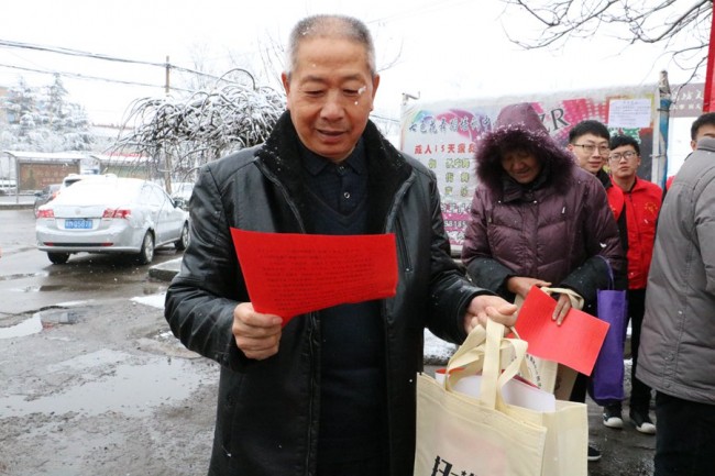 在现场,志愿者们为居民送去了准备好的春联、挂历以及“讲文明、树新风、改陋习”倡议书,居民们有序领取,积极配合,并仔细阅读倡议书内容,前来领取的居民纷纷表示这样的活动很有意义,受到一致好评。即使天气恶劣,志愿者们的脸上也都洋溢着为民服务的笑脸。