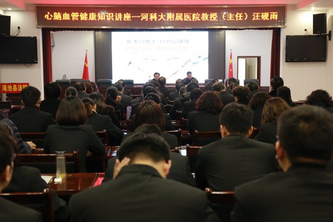 为关爱干警身心健康,增强干警保健意识,确保全院干警以良好的精神状态投入到审判执行工作中,2月15日下午,渑池县人民法院邀请河南科技大学第一附属医院心血管内科汪砚雨教授为干警进行健康知识讲座。党组书记、院长刘占军携全体干警参加了讲座。