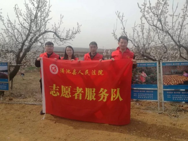 3月22日,渑池县第十五届杏花文化旅游节盛大开幕,渑池县法院组织青年志愿者一大早赶到果园乡李家村杏园,为开幕式活动志愿服务。