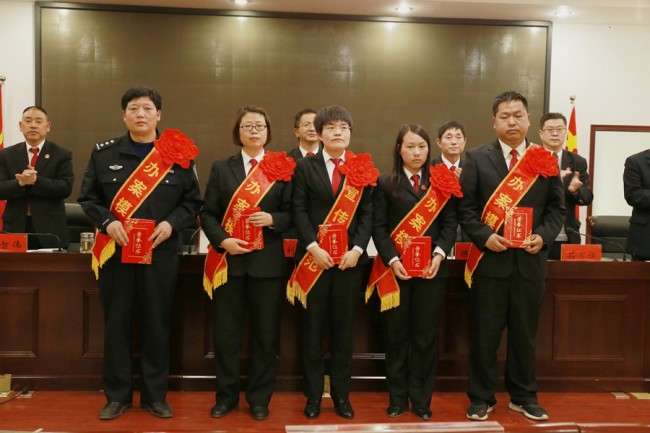 会上,政治处主任茹育俊对全体干警进行节前集体廉政谈话;执行局长毛智伟通报了2019年3月份各审判团队及干警个人审判质效考评情况;政治处主任茹育俊宣读了《关于表彰2019年3月份办案模范和第一季度宣传模范的决定》;院领导为受到表彰的办案模范和宣传模范颁发了荣誉证书;两名结案数较多的干警上台作经验交流和两名团队负责人上台作表态发言;副院长张军点评2018年第四季度发还改判案件情况;执行局长毛智伟宣读了《渑池法院关于开展“执行办案百日竞赛活动”的实施方案》;最后,党组书记、院长刘占军作总结点评。