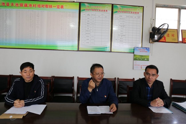 在村委会议室,刘占军院长传达了市县有关脱贫攻坚工作会议精神和要求,详细了解了脱贫攻坚举措和成效以及各项扶贫政策落实情况,并与镇村干部、驻村工作队进行深入交流。
