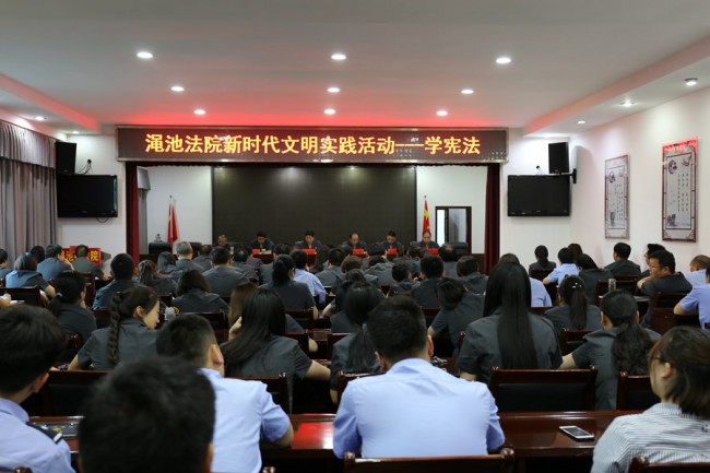 为进一步树立宪法意识,增强干警铭记职责、践行使命、依法履职观念,以更加强烈的责任担当,更加饱满的精神态度,更加扎实的工作作风,为全面推进各项工作开展做出积极贡献,2019年5月22日下午,渑池县人民法院开展新时代文明实践之“学宪法”主题教育活动。党组副书记、常务副院长陈明岚为全体干警进行了新修订宪法的再宣传、再教育活动。