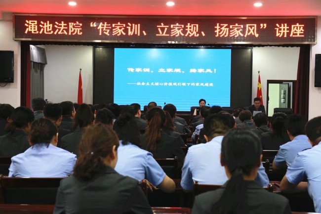 家风是中国传统文化传承的重要形式,为弘扬社会主义传统文化,建设社会主义核心价值观引领下的新家风,2019年6月5日下午,渑池县人民法院举办“传家训、立家规、扬家风”专题讲座,特邀请洛阳市资深心理、教育工作者李小改老师作专题讲座。党组书记、院长刘占军携全体干警聆听了讲座。