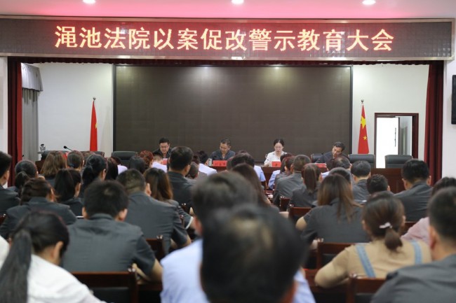为深入贯彻落实上级关于“以案促改”活动要求,营造风清气正政治生态,推进“以案促改”警示教育活动不断深入,2019年6月12日下午,渑池县人民法院组织召开“以案促改”警示教育专题会。党组书记、院长刘占军出席会议并讲话,县纪委监委派驻法院纪检组组长黄丽出席会议并对县法院“以案促改”警示教育提出要求,全体干警参加会议。会议由政治部主任茹育俊主持。