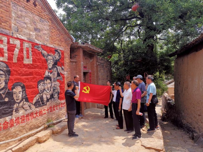 随后,老党员们又来到中国传统村落、省级历史文化名村、省级重点文物保护单位、省级乡村旅游示范村赵沟古村参观。在这里,老党员们聆听了刘冰、潘觉飞等人的事迹及小孤山战役的介绍,举行了重温入党誓词及齐唱红歌《没有共产党就没有新中国》等活动。
