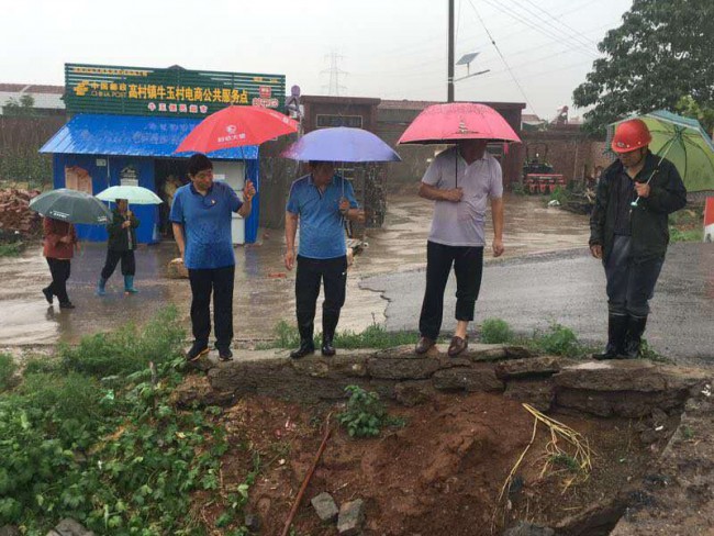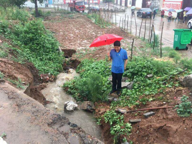 6月19日下午,渑池县各地普降小到中雨,给炎炎夏日带来了丝丝凉意,也给驻村扶贫工作队带来了考验。6月20日一大早,渑池县人民法院常务副院长、驻村工作队队长陈明岚即深入到藕池村实地查看指导防汛工作。