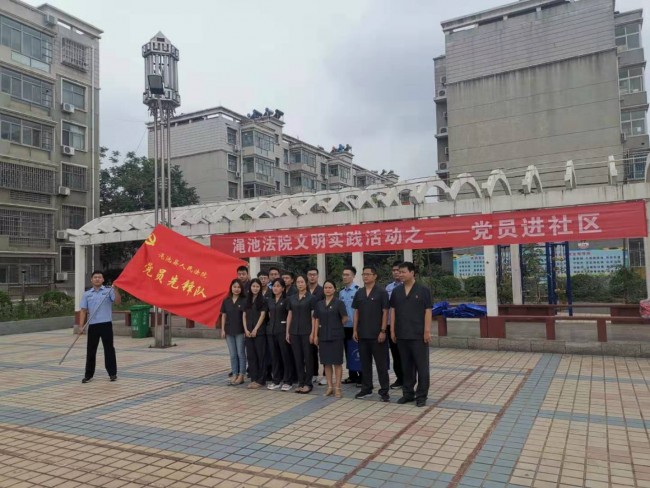 为进一步提升社区居民的文明素养及法律意识,2019年7月8日上午,渑池县人民法院组织党员干警到澧泉社区开展以“法制宣传进社区,幸福快乐你我他”为主题的党员进社区活动。