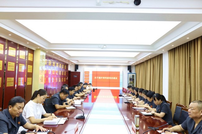 2019年8月20日上午,渑池县人民法院召开党组扩大会议,专题研究提升审判质效工作。会议由党组书记、院长刘占军主持,院班子成员及全体员额法官参加会议。
