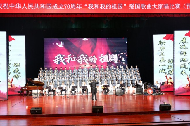 “我和我的祖国,我和我的祖国一刻也不能分割,无论我走到哪里都留下一首赞歌,我歌唱每一座高山,我歌唱每一条河......”2019年9月24日上午,在渑池县综合文化活动中心举办的“我和我的祖国”爱国歌曲大家唱比赛(预赛)中,渑池县人民法院80余名干警组队参加比赛,演唱了《我和我的祖国》《祖国颂》两首歌曲,用昂扬的精神和饱满的热情喜迎祖国70华诞。