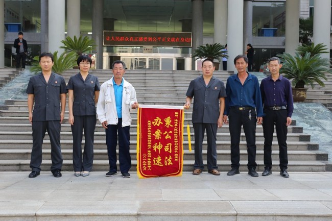 9月29日上午,陈某某等7名当事人来到渑池县人民法院,将一面写有“秉公司法 办案神速”的锦旗送到行政审判庭办案法官手中,以表达感激之情。