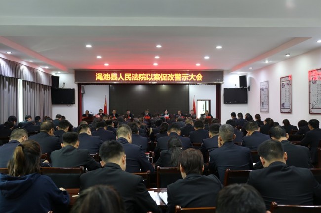 会议通报了我院今年的违纪案件和宣读了《渑池县人民法院集中开展以案促改工作实施方案》;5名干警上台作表态发言。
