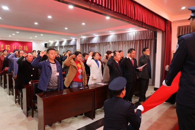 宣誓仪式上,与会人员全体起立奏唱国歌,全体人民陪审员面向国旗庄严宣誓:“我是中华人民共和国人民陪审员,我宣誓:忠于国家,忠于人民,忠于宪法和法律,依法参加审判活动,重视履行审判职责……”。随后,张军副院长结合自身工作实际,从人民陪审员的工作职责、行为规范和注意事项等方面做了详细讲解,为新任人民陪审员上了一堂生动的法律培训课。
