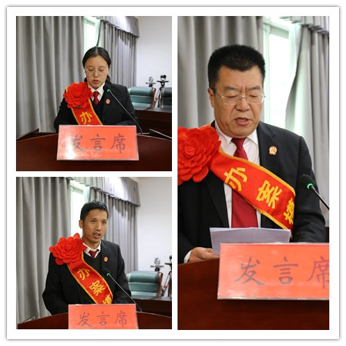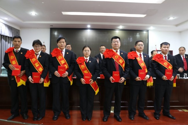 刘占军院长强调,十月份,全院干警信念坚定、勤勉敬业,结案568件,诉讼结案率达90.56%,同比上升7.57%,位居全市第1;这些成绩的取得,无不凝结着同志们的心血和汗水。同时,希望全体干警以办案模范为榜样,守初心、担使命,公平公正的办好每一起案件。关于综合部门的工作,刘占军院长对法制宣传、调研、案例编报等工作取得的成绩予以肯定,同时提出了具体要求。