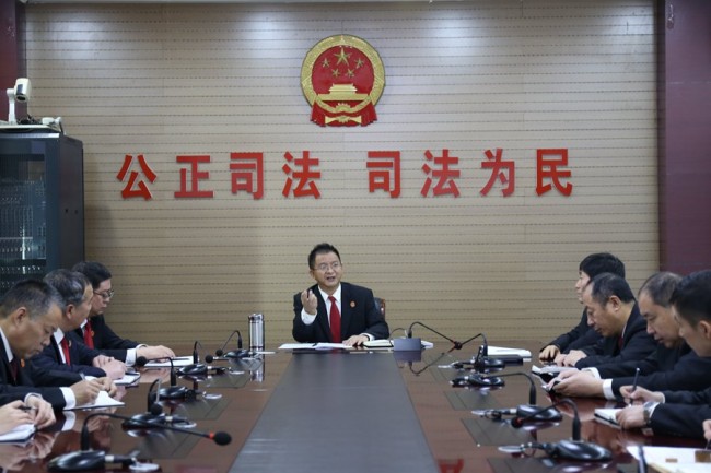 刘占军院长要求,一是提高政治站位,加强组织领导。要把扫黑除恶专项斗争2019年度收官战作为一项重要任务、政治责任,扛在肩上、抓在手上,迅速掀起扫黑除恶专项斗争强大攻势。二是坚持依法办案,加强统筹协调。对全院审理的涉黑恶案件进行台账式动态管理,针对发现的线索及时与公安、检察、监察机关进行沟通协调。同时,要严格把握法律政策界限,确保专项斗争始终在法治轨道上运行。三是坚持除恶务尽,“打财”“打伞”同步推进。将“打伞破网”与扫黑除恶一体推进,针对案件审理过程中发现的线索及时移交,确保对“关系网”“保护伞”一查到底。同时,要依法追缴、没收违法所得,有力摧毁黑恶势力经济基础。四是加大宣传力度,营造良好氛围。对审理的涉黑恶案件,承办法官要以案释法,积极开展送法进企业、进社区、进校园活动,加强“以案说法”式的报道,提高人民群众对扫黑除恶专项斗争的参与度、知晓度。