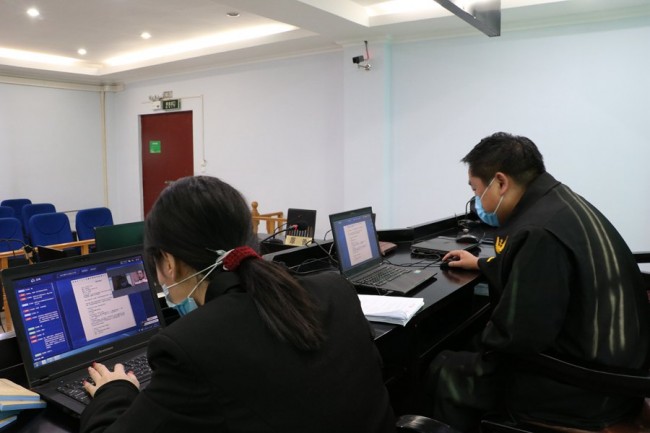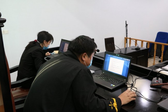 “原告,听得清我说的话吗?...”下午3时许,庭审正式开始。与以往不同的是,在审判庭内,除了佩戴口罩的审判员和书记员外,原告与被告席上空无一人,取而代之的是屏幕上出现的清晰头像和音响里传出的声音。
