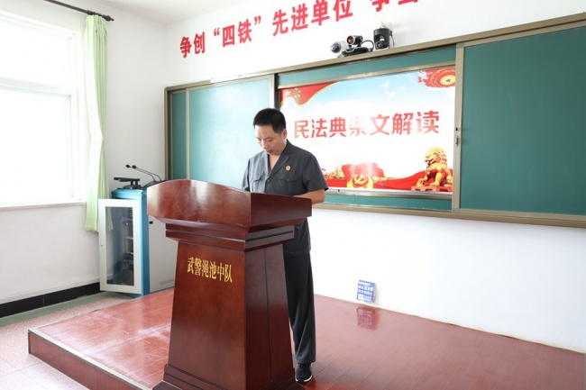 随后,仰韶法庭庭长王留刚从渑池县拥军拥属历史到渑池县法院涉军维权法庭设立演变讲起,重点解读了《民法典》第1081条款的内容,从五种涉军婚姻案件情形应当如何应对,为官兵们深入分析法律是如何保护涉军婚姻案件中军人合法权益的,受到了官兵们的欢迎和好评。