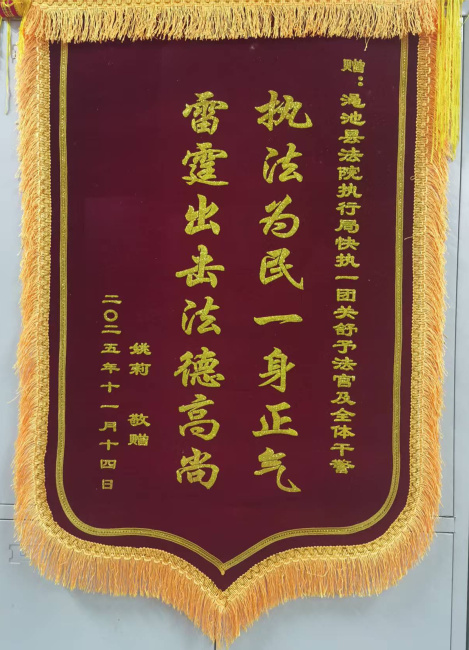 “我们干的都是本职工作,案件还没有执行完毕,这锦旗我们真的是受之有愧。”承办执行干警关舒予回应着。