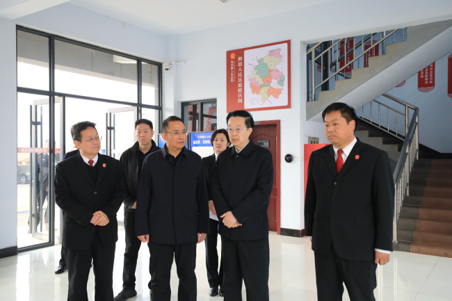 3月12日上午,三门峡市中级人民法院党组书记、院长周东方,党组成员、政治部主任张勃一行到渑池县人民法院,深入仰韶人民法庭、张村人民法庭实地调研指导“枫桥式人民法庭”创建工作。渑池县委常委、政法委书记郭好,县法院党组书记、院长李赞谋陪同调研。